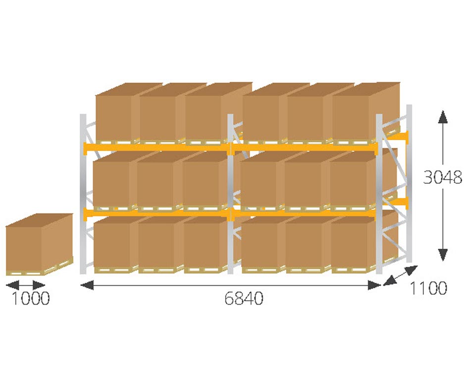 - Beam option - 3300mm (3000 kgs per pair) Stores 3 UK Pallets Per Level